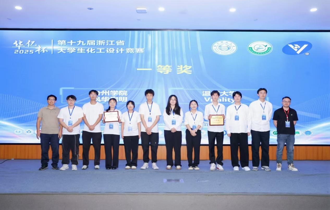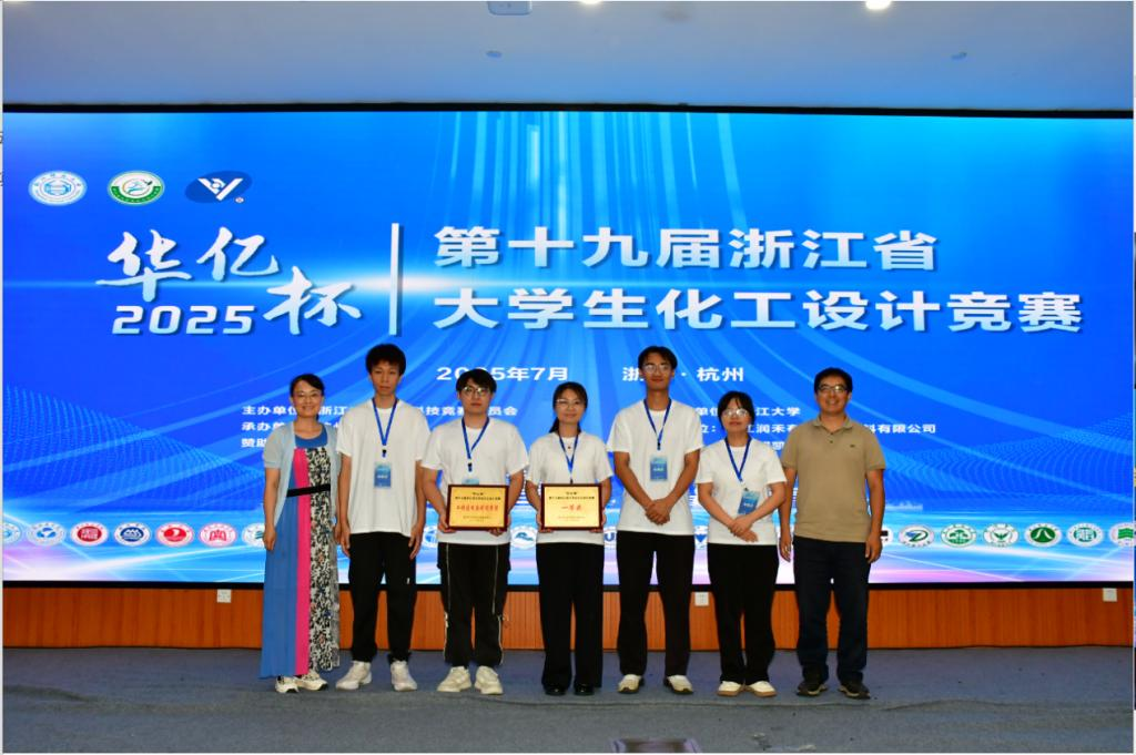 The “Sulphone Dawn” team—team members of which include Liang Ping, Yu Junchen, Liang Tingting, Lu Peng and He Jinghong from School of Pharmaceutical and Chemical Engineering from Taizhou University—won the first prize and the Best Engineering Drawing Award in the 19th “Huayi Cup” Zhejiang Universities Chemical Design Contest concluded recently in Hangzhou.