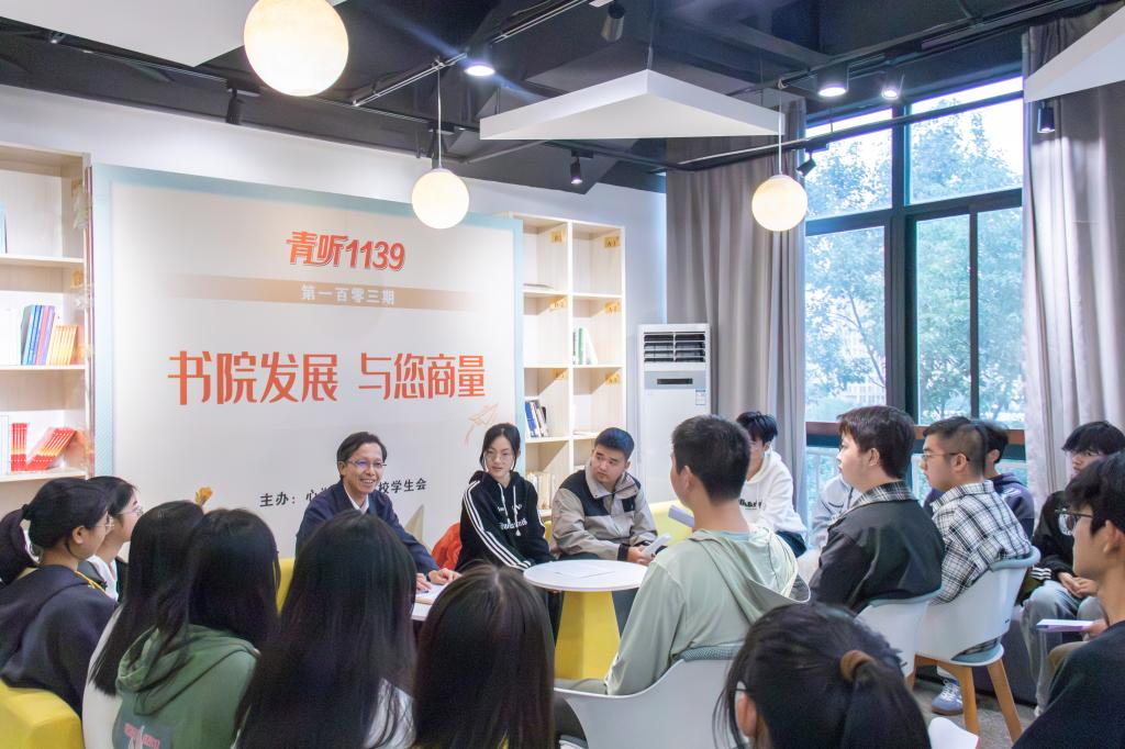 The 103rd session of the “Hearing Youth 1139” series, jointly organized by Xinhu College and the University Student Union, was held on October 30 at Xinhu College in the Jiaojiang campus. Xiang Fengri, Deputy Secretary of Taizhou University Party Committee, attended the event. He was accompanied by relevant leaders from the Student Affairs Department, the Youth League Committee, and Xinhu College, engaging in a face-to-face dialogue with 25 students from the college to explore new pathways for its development.