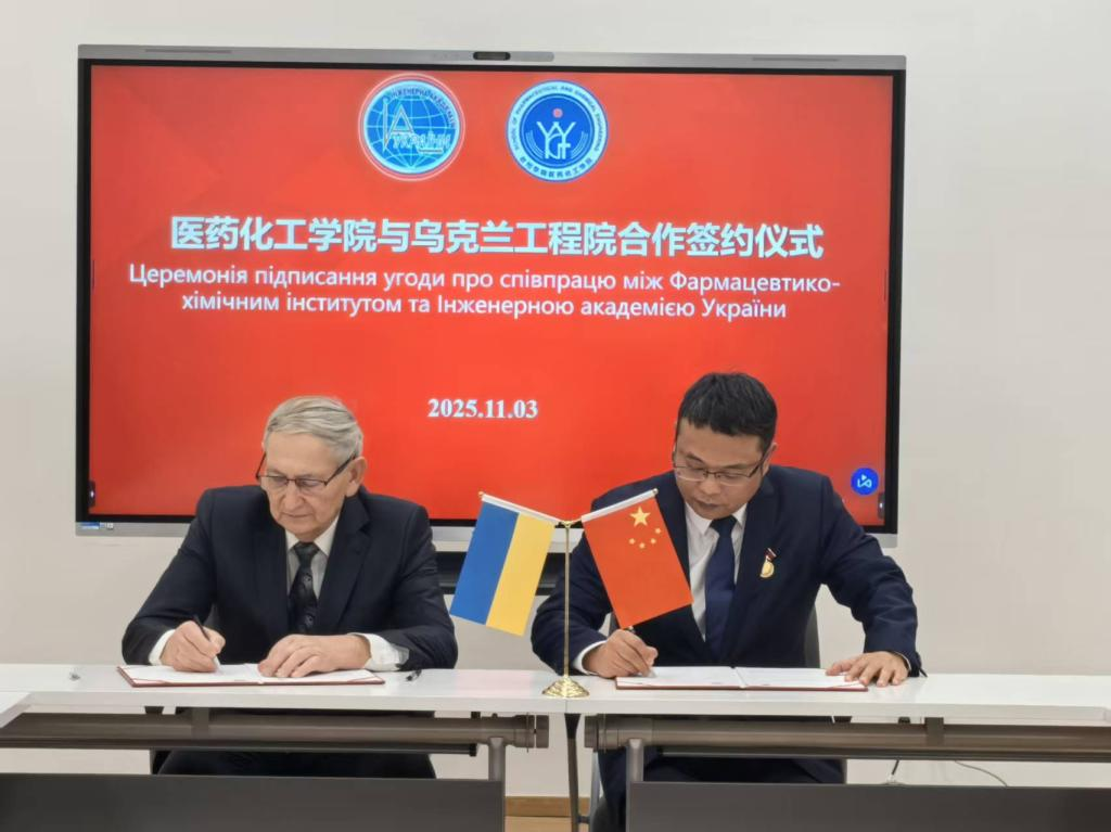 At the meeting, Huang Guobo and Vladimir Drevitsky, representing the School of Pharmaceutical and Chemical Engineering and the Ukrainian Academy of Engineering respectively, jointly signed the “Cooperation Framework Agreement between the School of Pharmaceutical and Chemical Engineering of Taizhou University and the Ukrainian Academy of Engineering.” Both parties identified cooperation areas, including joint scientific research and development, as well as the transformation of scientific and technological achievements, to promote research collaboration and talent cultivation between the various entities of the Ukrainian Academy of Engineering and the School of Pharmaceutical and Chemical Engineering.