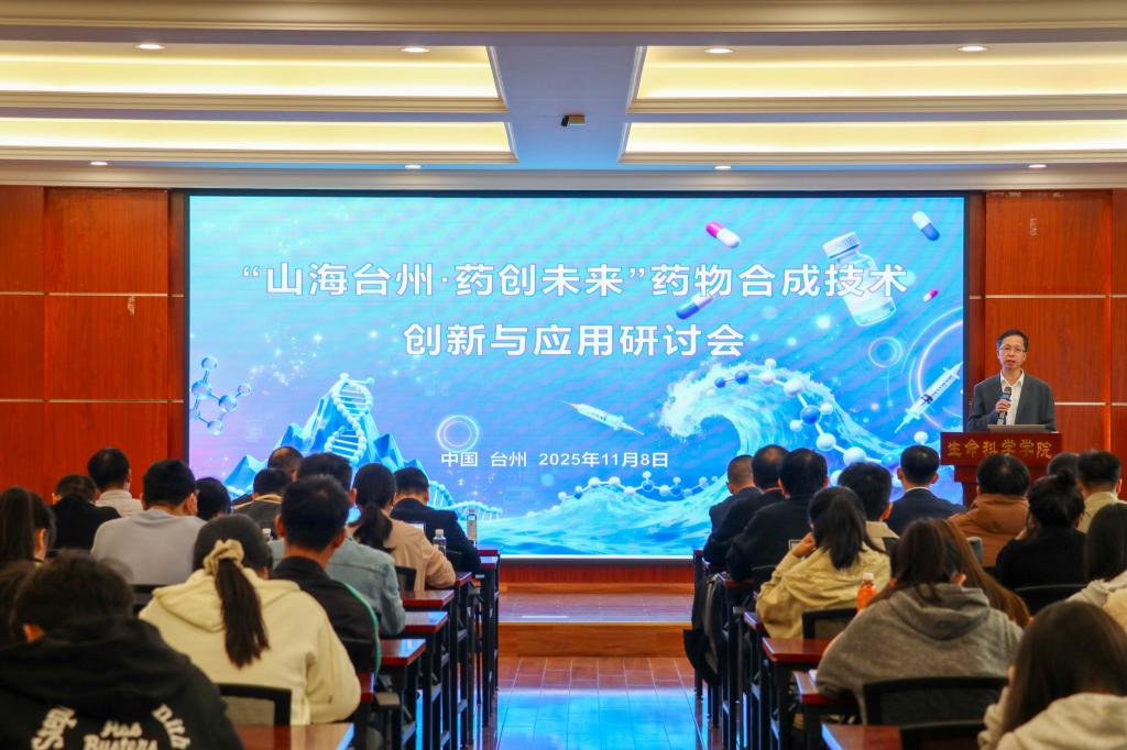 The Symposium on Innovation and Application of Drug Synthesis Technology was held on November 8 in Conference Room D241 of the School of Life Sciences. The symposium focused on cutting-edge breakthroughs and industrial applications in drug synthesis technology, aiming to promote deep integration of industry, academia, and research, and to build a comprehensive innovation system spanning from “synthesis technology—formulation development—industrial application.” It attracted numerous experts, scholars, and key researchers from universities, enterprises, and hospitals. The symposium was jointly organized by School of Life Sciences, Zhejiang International Science and Technology Cooperation Base for Bio-based Resource Development and Utilization, Taizhou Key Laboratory of Biomedicine and Advanced Formulations, Taizhou Key Laboratory of Biomass Functional Material Development and Application, Taizhou Key Discipline of Biology and Medicine, and Department of Hematology and Oncology of Taizhou Municipal Hospital (Affiliated Hospital of Taizhou University). The opening ceremony was presided over by Zhao Kai, Dean of the School of Life Sciences. Xiang Fengri, Deputy Secretary of the University Party Committee, attended the opening ceremony and delivered a speech.