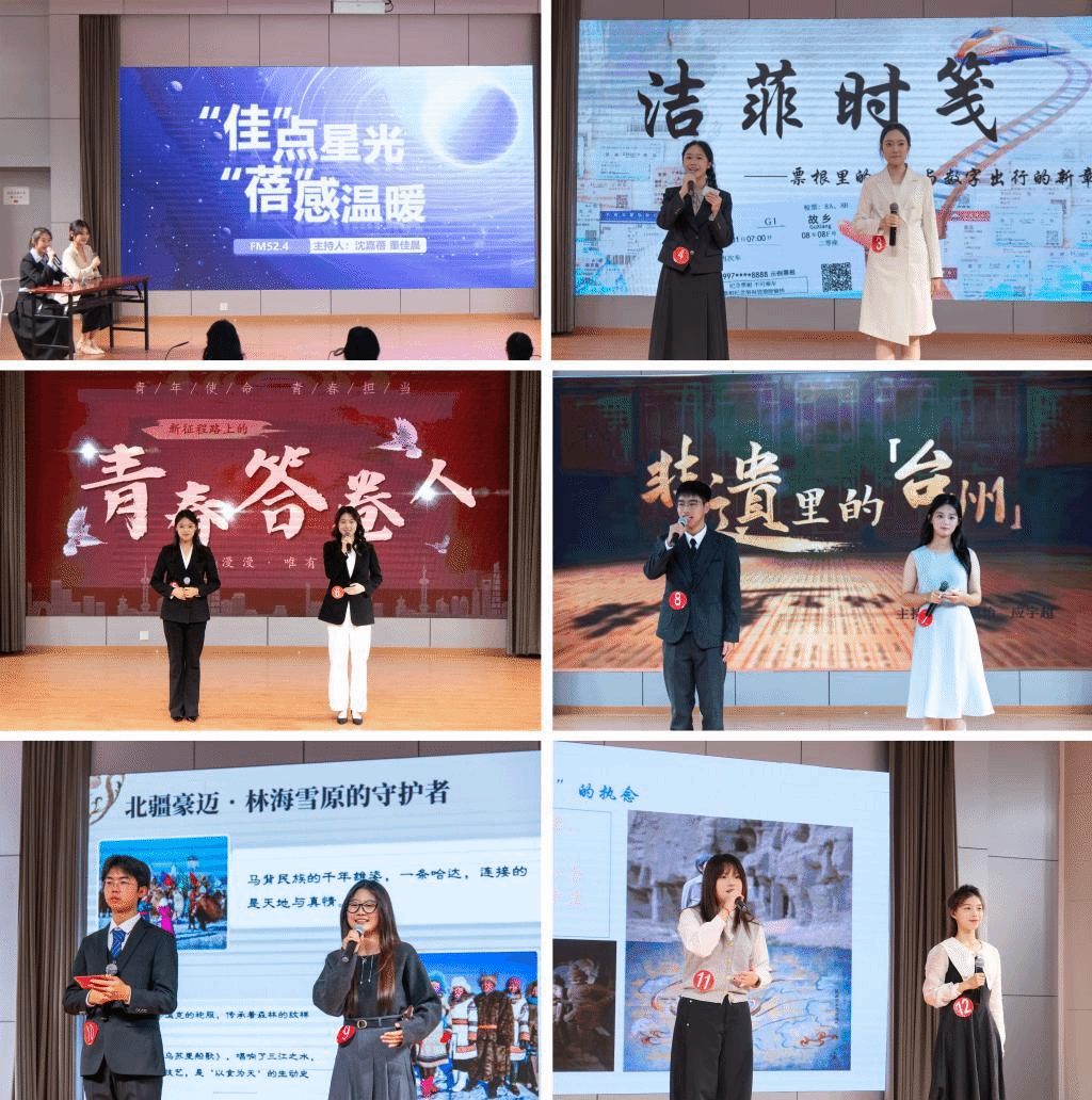 The final of the 2025 Taizhou University Host Competition, themed “Unique in Language, Dynamic in Voice” was held on November 22 at the Student Activity Center of the Linhai Campus. Jin Niya, Associate Professor of the School of Humanities, and teachers from Taizhou University Youth League Committee served as judges. The event was organized by the University Youth League Committee.