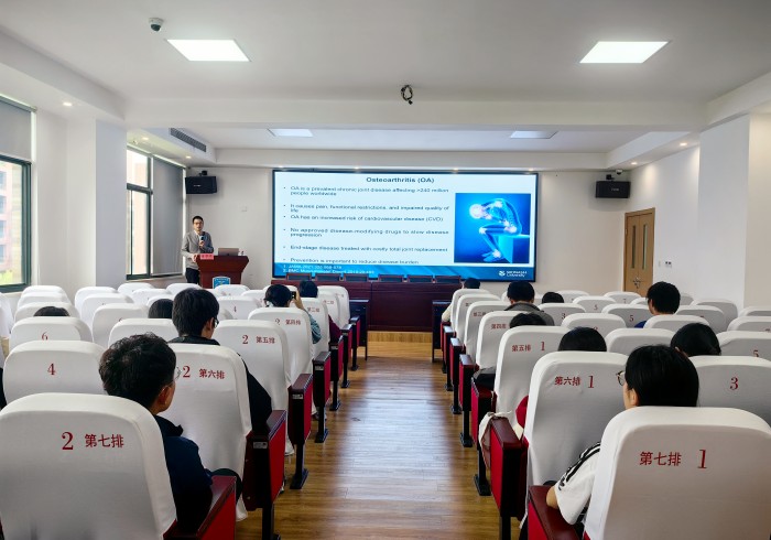 Dr. Zeng’s lecture is titled “Towards a better understanding of the pathogenesis of knee osteoarthritis”. Knee osteoarthritis is a common degenerative disease in the elderly, and the chief treatment method is to relieve the pain symptoms. How to prevent the occurrence of knee osteoarthritis is the key. This lecture introduces the relationship between cardiovascular diseases, metabolic syndrome, endogenous hormones in human body and knee osteoarthritis, as well as the effect of drug atorvastatin on meniscus pathology and knee joint structural process.