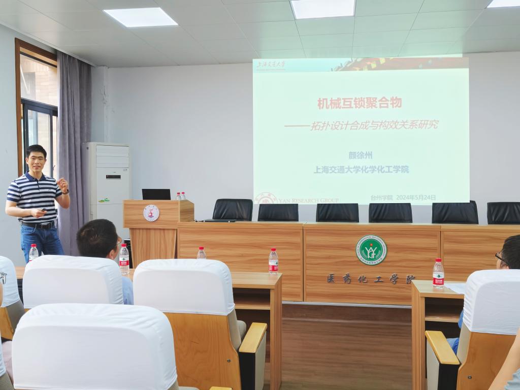 The School of Pharmaceutical and Chemical Engineering and the Institute for Advanced Study jointly held lectures on the frontiers of supramolecular chemistry and polymer materials in the second conference room on the morning of May 24. Li Xiaopeng, a researcher from Shanghai Institute of Organic Chemistry, Chinese Academy of Sciences, and Yan Xuzhou, a researcher from Shanghai Jiaotong University, were invited to deliver the lectures. The lectures were hosted by Ma Da, Vice Dean of the School of Pharmaceutical and Chemical Engineering.