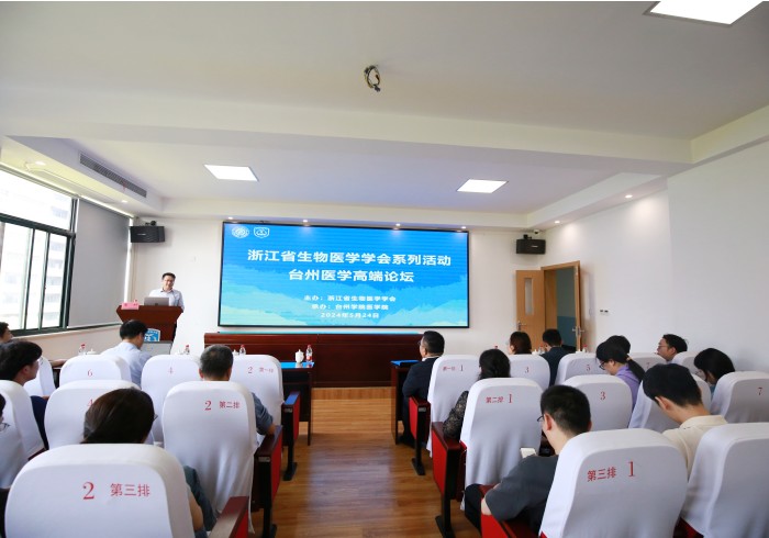 To promote academic exchanges and scientific and technological collaboration between biomedical research institutes and pharmaceutical enterprises in Zhejiang province, Taizhou University (TU)’s School of Medicine and Science and Technology Department jointly organized Taizhou Medical High-end Forum which lasted from May 24th to 25th. Experts from Zhejiang Biomedical Society, enterprise representatives from Zhejiang Haizheng Pharmaceutical Co., Ltd., Zhejiang Tianyu Pharmaceutical Co., Ltd., and Zhejiang Feng’an Bio-Pharmaceutical Co., Ltd., and TU teachers and students attended the event.