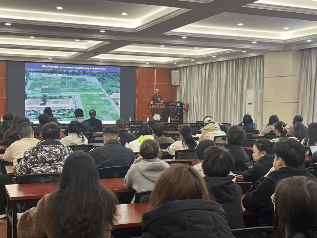 Focusing on the systemic impacts of multiple global change factors on plants, the lecture comprised three sections: (1) effects on soil ecology, the model plant Arabidopsis thaliana, and grassland ecosystems from factors such as warming, drought, microplastic pollution, and elevated CO₂; (2) differential impacts on native vs. invasive plant species (incorporating meta-analyses and individual experiments); and (3) effects on plant-soil feedback mechanisms (e.g., soil chemistry, bacterial, and fungal communities).