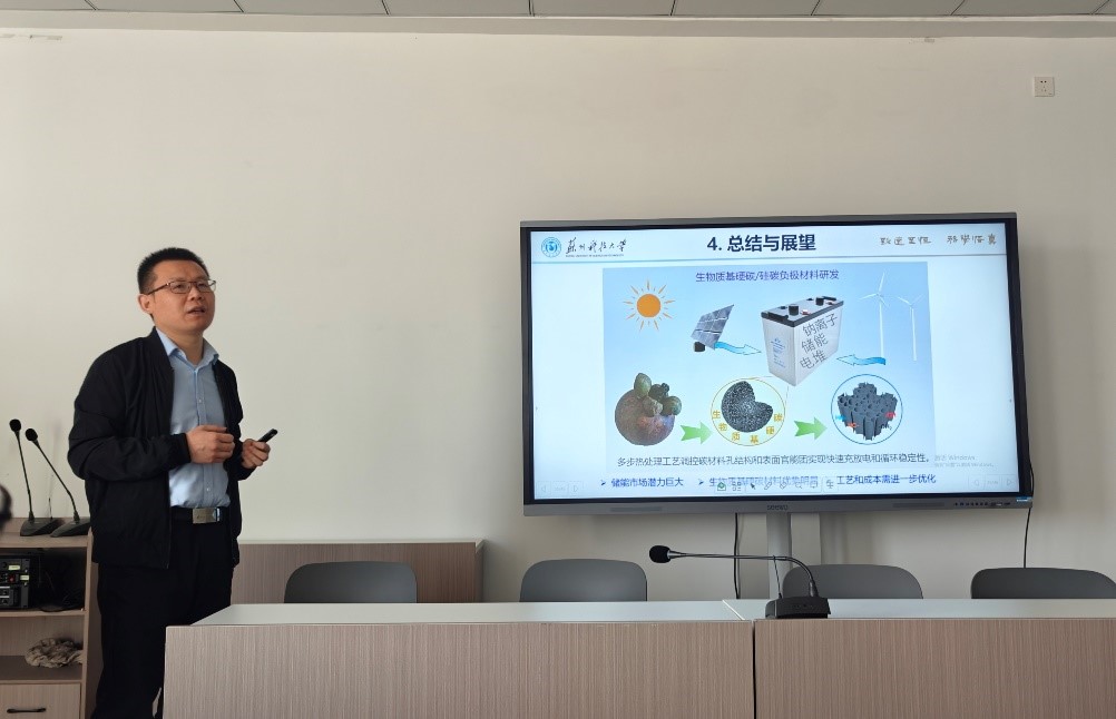 Professor Ma, who has long specialized in the preparation processes and structure-property relationships of biomass-derived functional carbon materials, focused his lecture on the design strategies and sustainable energy applications of various biomass-derived carbon materials. He detailed his team’s latest breakthroughs in “property regulation of biomass-based porous carbon,” particularly in controlling microstructures, defect concentrations, charge migration pathways, and their correlations with device performance.