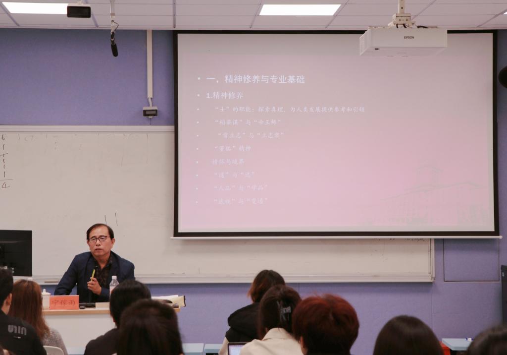 At the beginning of the lecture, Professor Ning Jiayu emphasized the importance of spiritual cultivation and professional foundation. He pointed out that the influence of “scholars” lies in exploring truth, providing philosophical references and guidance for human development, and contributing to the progress of human society. He mentioned the debate between “seeking livelihood” and “being an advisor to the emperor,” which reflects the dual pursuit of knowledge and morality. Professor Ning stressed the relationship between “constantly setting goals” and “constantly adhering to goals,” and mentioned the concept of “willingness to give up,” warning students to clarify what they most want to pursue in life and to “set firm goals.”