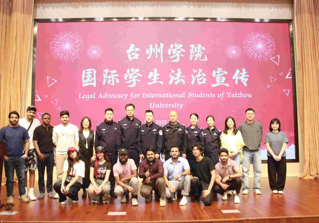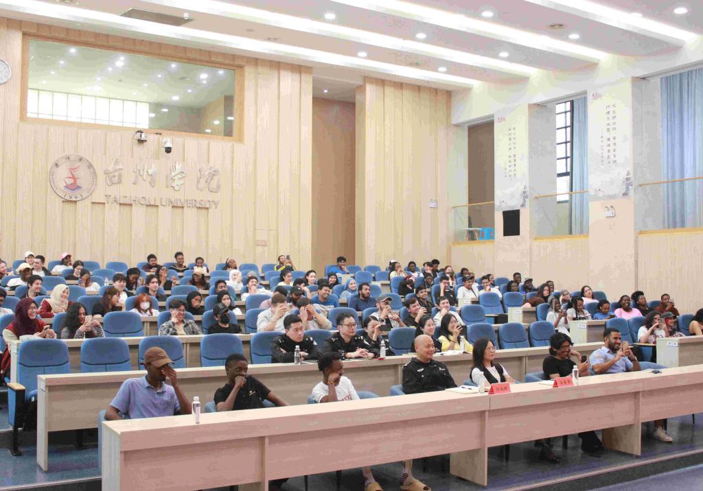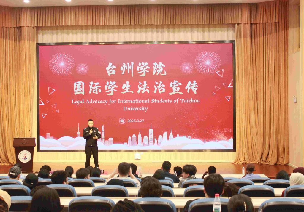 The International School hosted a legal publicity lecture for international students at TU on March 27. He Chenggang, Director of the Exit-Entry Administration Bureau of Taizhou Public Security Bureau, Liang Yan, Deputy Director of the Exit-Entry Administration Bureau of Taizhou Public Security Bureau, Chen Lin, Chief of the Overseas Personnel Management Service Brigade of the Exit-Entry Administration Bureau of Taizhou Public Security Bureau, Wang Zhe, Chief of the Jiaojiang Brigade, and Li Geng, Deputy Chief of the Jiaojiang Brigade, attended the lecture. Wang Aiqin, Vice Dean (Chair) of the International School, presided over the event. Gong Shasha, Vice Dean of the International School, secondary school counselors, and over 120 international students attended.
