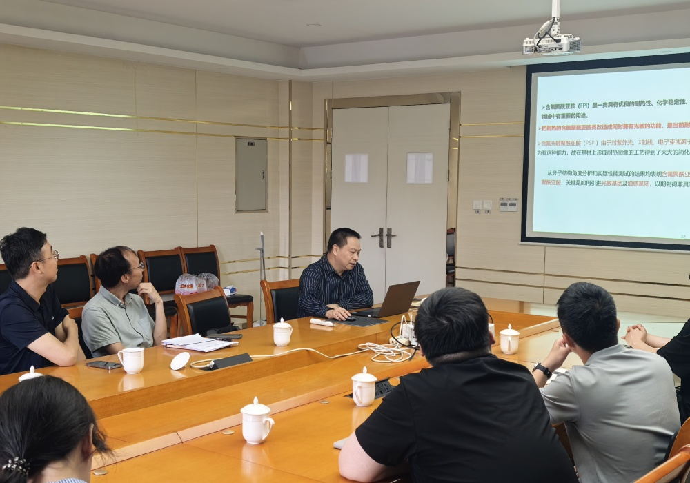 Director Yu Xinhai focused on five main areas: an overview of electronic chemicals, technology of fluorinated polyimide monomers and polymers, fundamentals of photochemical reactions, preparation and photosensitive mechanisms of fluorinated photosensitive polyimides, and their applications.