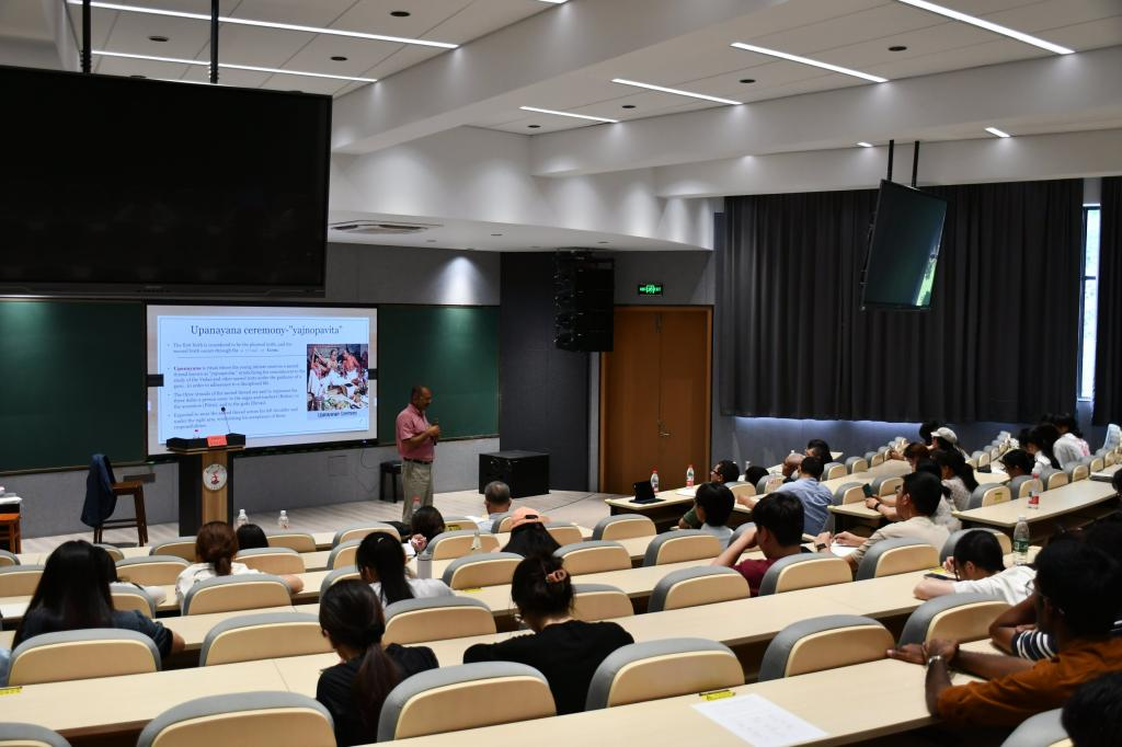 Associate Professor Uddhab Pyakurel, Vice Dean of the Faculty of Humanities at Kathmandu University, was invited on the morning of July 1st to deliver an academic lecture titled “Society and Politics in South Asia: The Case of Nepal” in Lecture Hall A6. Wang Gang, Dean of the School of Foreign Languages at Taizhou University, Ma Junzhou, Deputy Director of the International Exchange Office, as well as faculty and students from the School of Humanities and the School of Foreign Languages attended. The lecture was hosted by Professor Luo Zhengming, Dean of the School of Humanities.