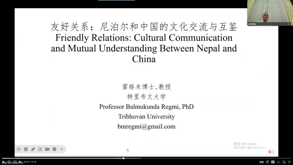 Professor Regmi systematically outlined the millennia-long history of cultural exchange between Nepal and China, covering historical ties, ethnic migrations, linguistic evolution, religious dissemination, and daily life. He noted that the Kirati people, one of Nepal’s oldest ethnic groups, are believed to have migrated from China, and their calendar system aligns closely with ancient Chinese civilizations, dating back roughly 5,000 years. Material exchanges included Tang Dynasty introductions of spinach from Nepal, while Chinese tea, cabbage, firecrackers, lychees, and related customs influenced Nepalese language and culture.