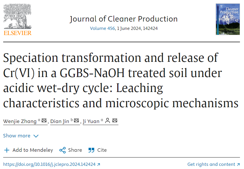 Zhang Wenji’s team from the School of Civil Engineering and Architecture published a research paper in Journal of Cleaner Production, a top journal of the Chinese Academy of Sciences (CAS). The title of the paper is “Speciation transformation and release of Cr(VI) in a GGBS-NaOH treated soil under acidic wet-dry cycle: Leaching characteristics and microscopic mechanisms”. Prof. Zhang Wenjie is the first author, Associate Prof. Ji Yuan is the corresponding author, and TU is the first organization.