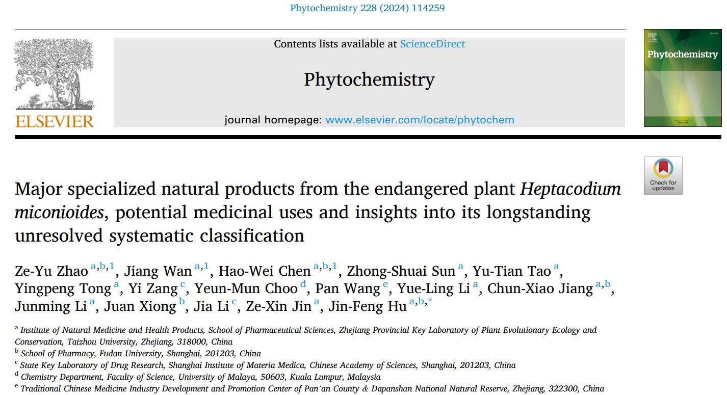 The research achievements provide a new approach for actively scientifically protecting, rationally developing, and utilizing the unique endangered plant resources of Heptapetalum in China, and offer new scientific clues for discovering potential novel drug lead compounds against major metabolic diseases. This study is the thirty-seventh part (Part XXXVII) of the “Phytochemical and Biological Studies on Rare and Endangered Plants Endemic to China” series conducted by Professor Hu Jinfeng’s team. This series of research has also laid a solid foundation for two young scholars from Professor Hu’s team to successfully obtain funding from the National Natural Science Foundation of China for Youth Science Fund projects—“Targeted Identification of Aromatic Terpenoids from the Rare and Endangered Plant Magnolia Sinensis and Their Hypolipidemic Activity Research” (No. 82404464, January 1, 2025, to December 31, 2027, Dr. Wan Jiang); and “Discovery of Novel Secondary Metabolites from Endophytic Fungi of Endangered Pinus and Picea Species Induced by Plant Hormones and Their Antibacterial Activity Research” (No. 82404488, January 1, 2025, to December 31, 2027, Dr. Yan Lihong).