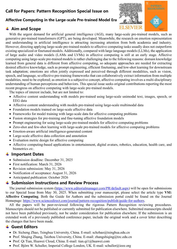 https://www.sciencedirect.com/special-issue/322636/affective-computing-in-the-large-scale-pre-trained-model-era