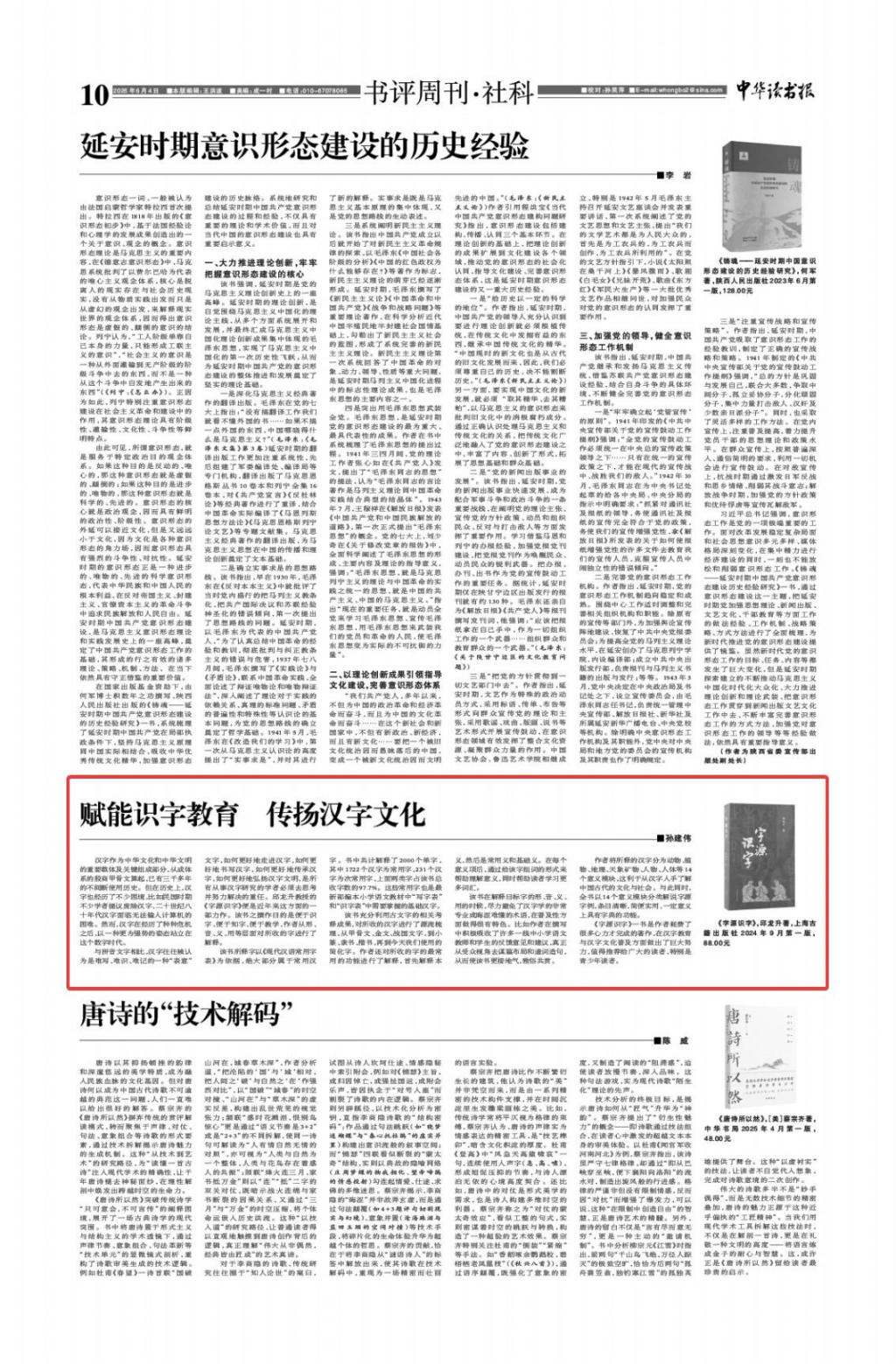 China Reading Weekly publishes a review of Professor Qiu Longsheng’s book Chinese Character Origin Literacy