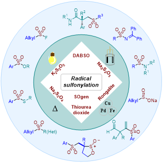 This review systematically introduces the development status of various SO₂ surrogates. It is subdivided into four sections based on the method of radical generation: photocatalysis, electrochemical synthesis, transition metal catalysis, and thermally initiated radical sulfonylation, providing a comprehensive overview of radical sulfonylation reactions involving SO₂.