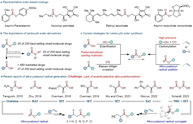 Carboxylic ester structures are fundamental functional groups in organic synthesis, widely found in natural products, pharmaceutically active molecules, and organic synthesis processes. Carboxylic esters can be readily converted into corresponding carboxylic acids or amides. Among the top 200 best-selling small-molecule drugs globally in 2023, 72% contained at least one carboxyl, ester, or amide group.