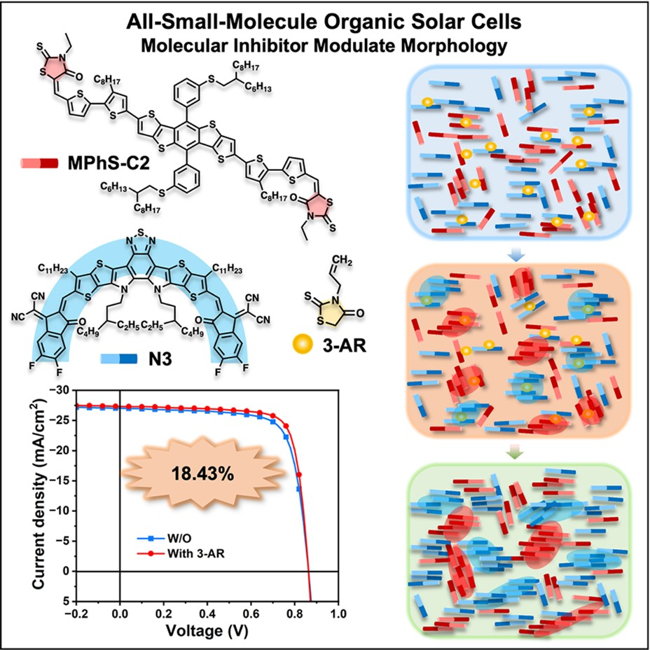 All-small-molecule organic solar cells exhibit significant industrial potential due to their well-defined molecular structures and excellent batch stability. However, their strong crystallinity has long constrained performance improvements by causing excessive phase separation.