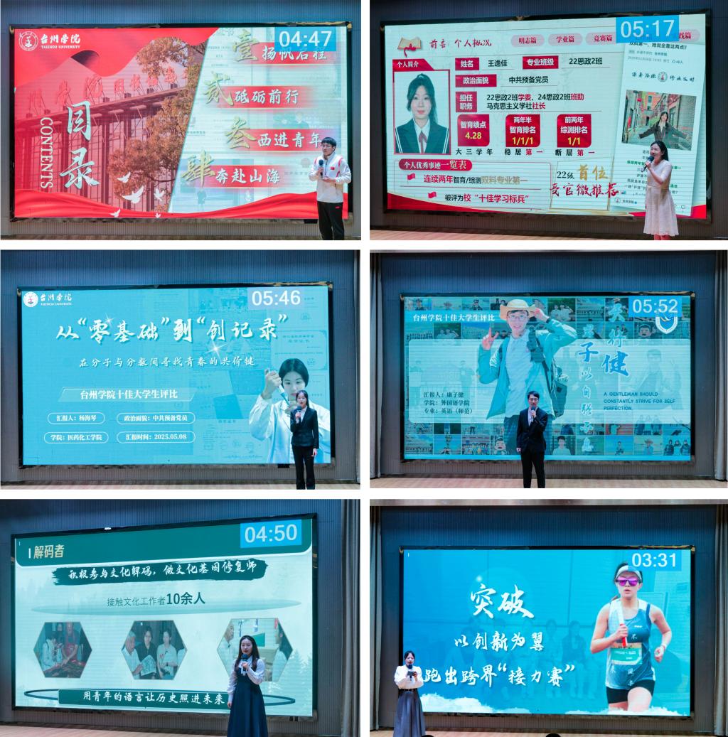 Their heartfelt stories powerfully demonstrated that “struggle defines youth’s brightest hue.” From tackling tough courses to innovating in research, and from volunteering to leading initiatives, they exemplified the responsibility and drive of Taizhou University’s finest. Their experiences serve not only as personal triumphs but also as inspiration for every student: to learn diligently with their feet on the ground, while also dreaming big and serving their country.